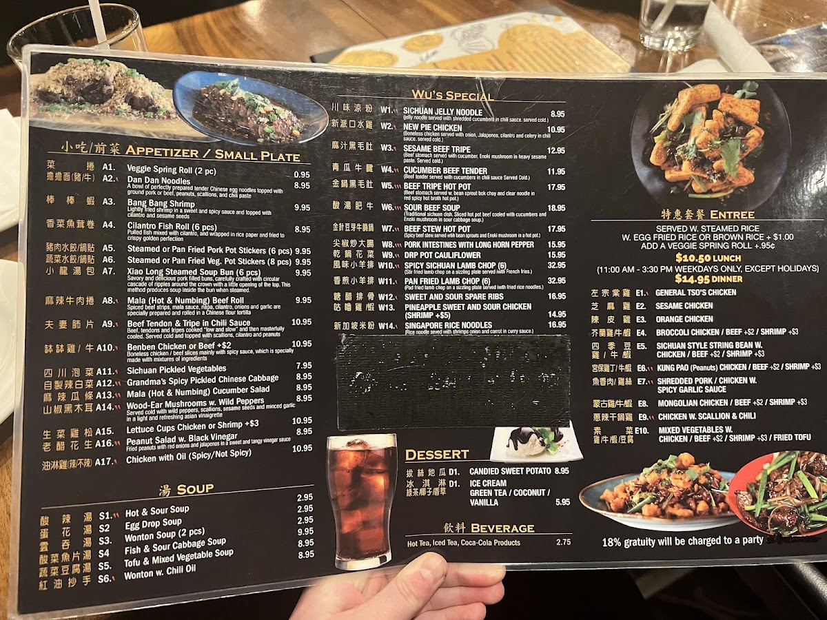 Spiced beef strips, mala sauce, napa, cilantro, onions and garlic are specially prepared and rolled in a Chinese flour tortilla